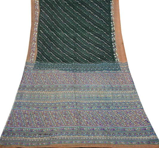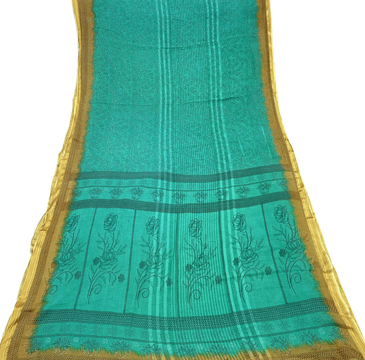 Indian Vintage Sari Green Pure Cotton Printed Sarees Craft Fabric 5Yd Soft Sewing Sarong Wrap Boho Floral Quilting Upcycle Crafting