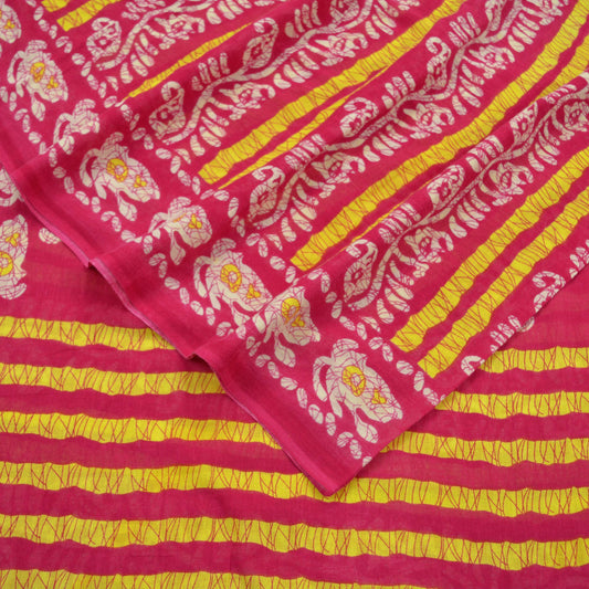 Indian Vintage Sari Pink Batik Printed Saree 100% Pure Cotton 5Yd Craft Fabric Soft Sewing Sarong Wrap Boho Quilting Dress Making
