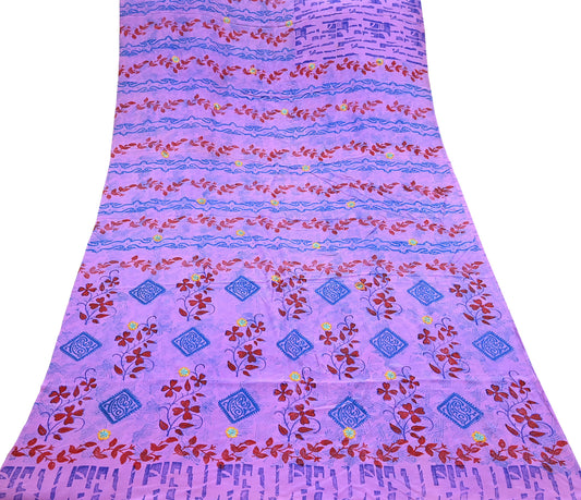 Indian Vintage Purple Pure Crepe Silk Saree Floral Print 6 Yards Soft Sewing Fabric for Dressmaking, Quilting, Crafting Upcycling