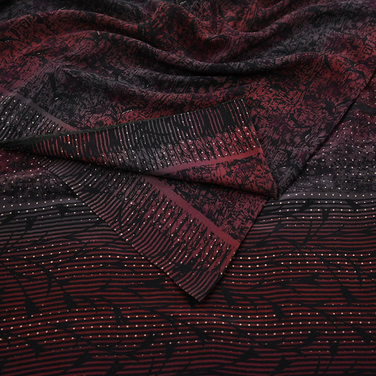 Indian Vintage Sari Maroon Pure Crepe Silk Block Printed Saree 5yard Sewing Quilting Floral Soft Craft Fabric Wrap