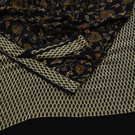 Indian Vintage brown black Pure Crepe Silk Saree Floral Print 5 Yards Soft Sewing Fabric for Dressmaking, Quilting, Crafting Upcycling