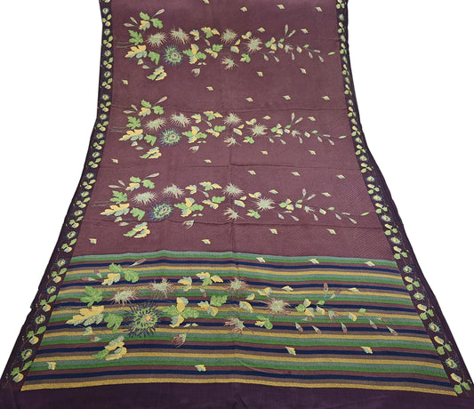 Indian Vintage Sari Brown Pure Crepe Silk Printed Saree 5yd Sewing Floral Soft Craft Fabric Wrap Dress Making For Crafting Quilting Upcycle