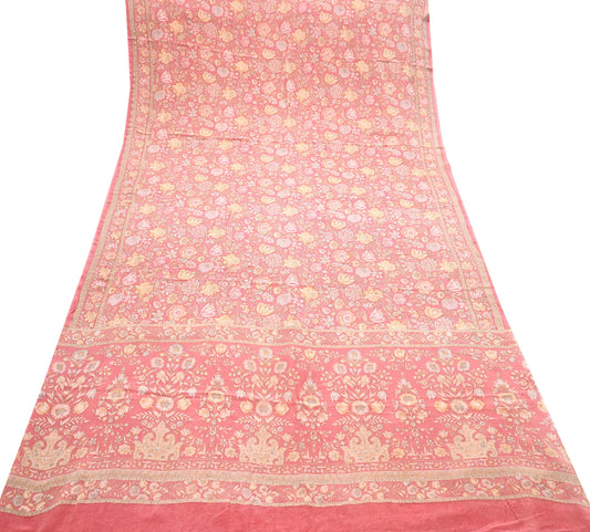 Indian Vintage Pink Pure Crepe Silk Saree Floral Print 5 Yards Soft Sewing Fabric for Dressmaking, Quilting, Crafting Upcycling