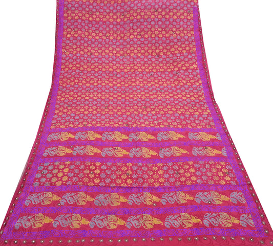 Indian Vintage Sari Pure Crepe Silk Hand Embroidered Saree 5yd Sewing Floral Craft Sequins Dress making Crafting Quilting