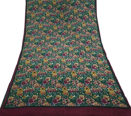 Indian Vintage Green & Multi Pure Crepe Silk Saree Floral Print 5 Yards Soft Sewing Fabric for Dressmaking, Quilting, Crafting Upcycling