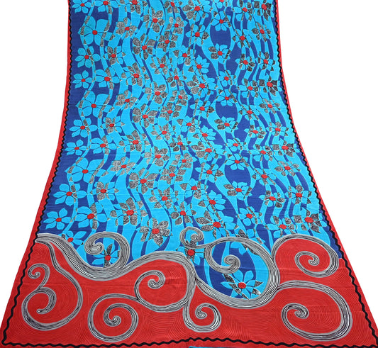 Indian Vintage red & Blue Pure Crepe Silk Saree Floral Print 6 Yards Soft Sewing Fabric for Dressmaking, Quilting, Crafting Upcycling