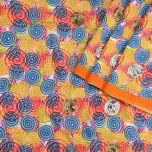 Indian Vintage Saree Multi Pure Crepe Silk Hand Embroidered Tie-Dye Sari Fabric 5yard Sewing Craft Fabric Ethnic Dressmaking