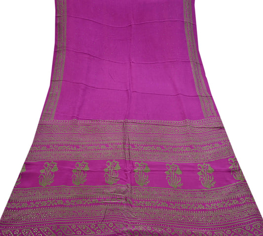 Indian Vintage Sari Pure Crepe Silk Mukesh Work Printed Saree 5yard Sewing Soft Craft Fabric Ethnic Dress making For Crafting Quilting