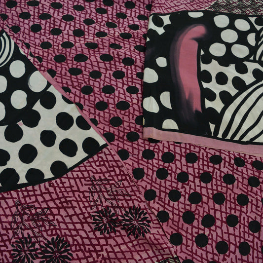 Indian Vintage Sari Pink Pure Crepe Silk Printed Saree 5yd Sewing Craft Fabric Abstract Soft Wrap Dress Making Quilting Crafting