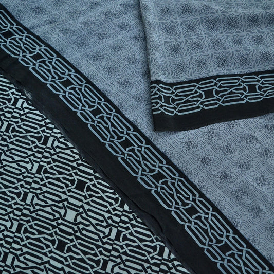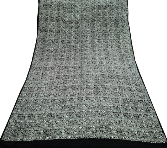 Indian Vintage Gray & Black Saree Pure Crepe Silk Printed Sari Craft Fabric 6yd Sewing Soft Wrap Dress making Crafting Quilting