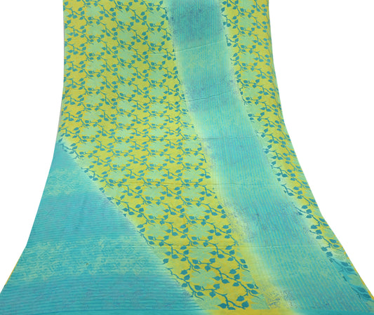 Indian Vintage Sari Lemon & Green Pure Crepe Silk Printed Saree 5yard Sewing Floral Soft Craft Fabric Wrap