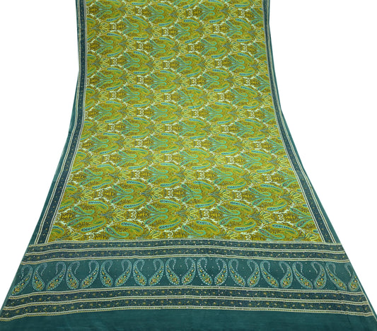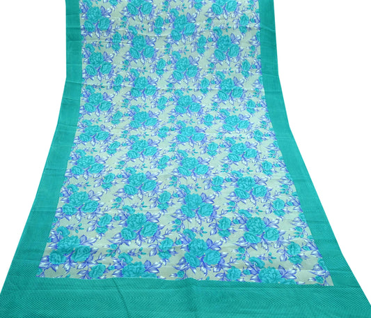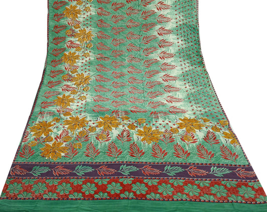 Indian Vintage Sari Green Pure Crepe Silk Printed Saree 5yard Sewing Floral Soft Craft Fabric Ethnic Wrap Dress Making Crafting Quilting