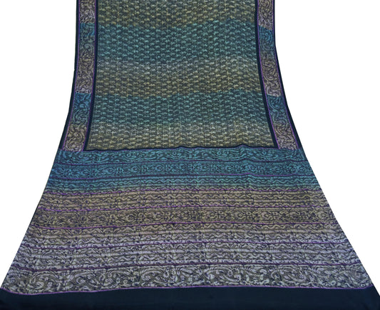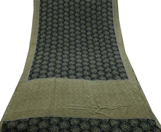 Indian Vintage Sari Green & Black Pure Crepe Silk Printed Sarees 5yd Sewing Floral Soft Craft Fabric Wrap Dress making Crafting Quilting