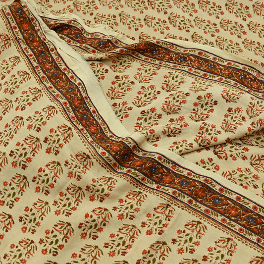 Indian Vintage Sari Beige Pure Crepe Silk Printed Sarees 5yd Sewing Floral Soft Craft Fabric Wrap Dress making Upcycle Crafting Upcycle