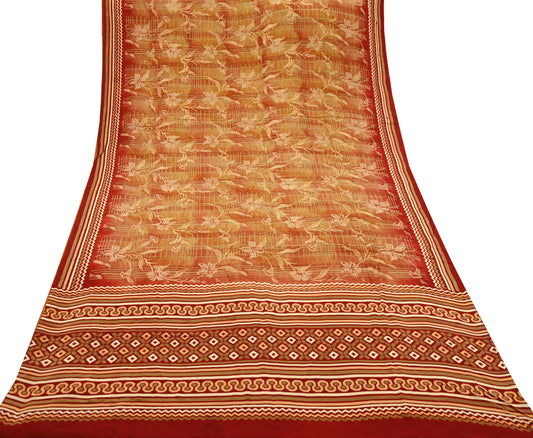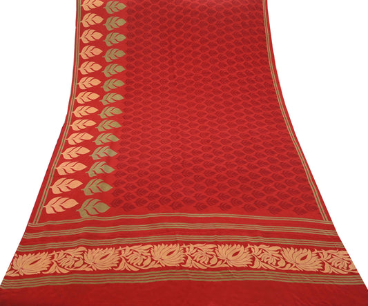 Indian Vintage Sari Red Pure Crepe Silk Printed Saree 5yd Sewing Floral Soft Craft Fabric Wrap Dress making Crafting Quilting Upcycle
