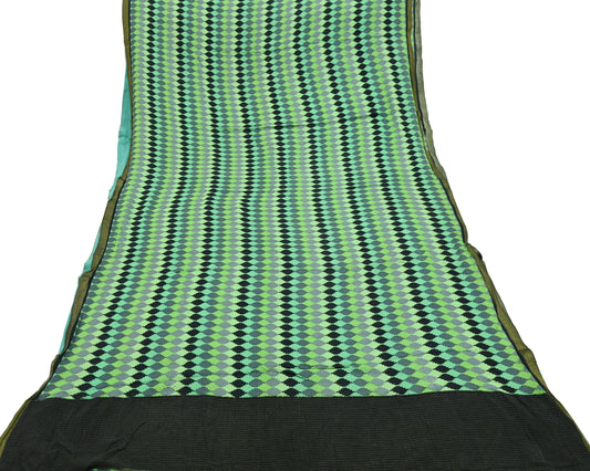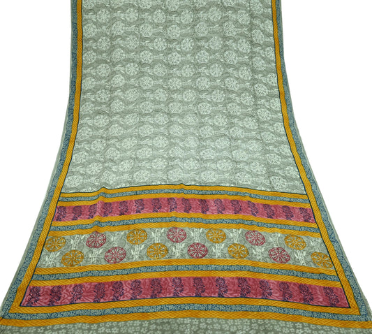 Indian Vintage Sari Green & Gray Pure Crepe Silk Printed Sarees 5yd Sewing Craft Fabric Wrap Upcycle Quilting Crafting Dress making