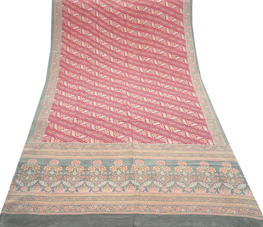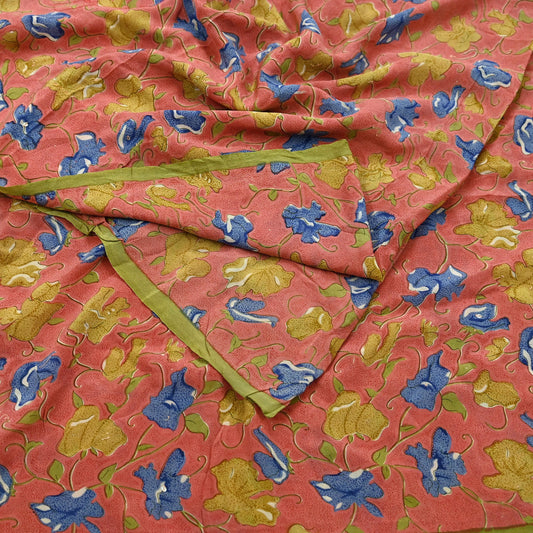 Indian Vintage Sari Green & Pink Pure Crepe Silk Printed Saree 6yd Sewing Floral Soft Craft Fabric Wrap Dress making Crafting Quilting