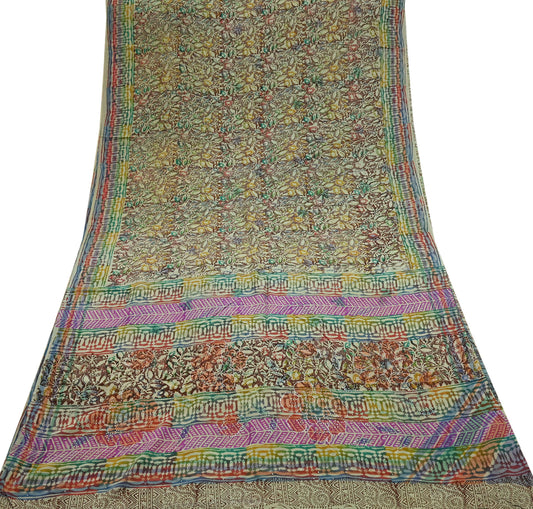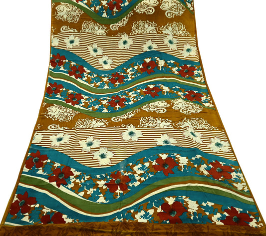 Indian Vintage Multi Saree Pure Crepe Silk Printed Sari Craft Fabric 5yd Sewing Floral Soft Craft Fabric Wrap Crafting Quilting Upcycle
