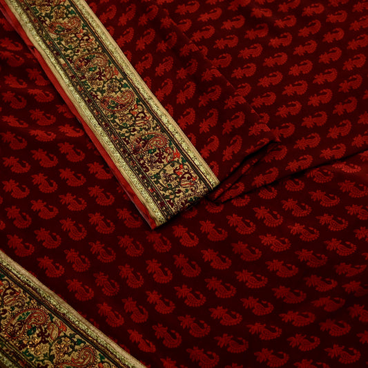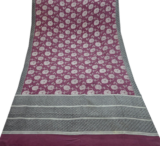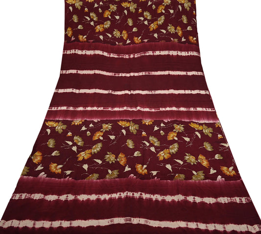 Indian Vintage Maroon Saree Pure Crepe Silk Printed Sari Craft Fabric 5yd Sewing Floral Soft Wrap Dress Making Crafting Quilting Upcycle