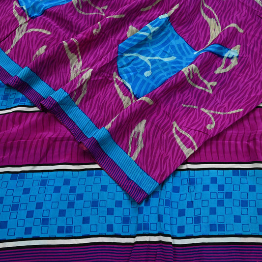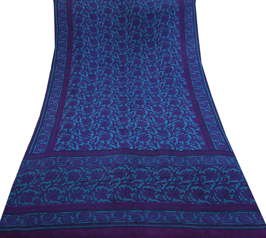 Indian Vintage Blue & Purple Saree Pure Crepe Silk Printed Sari 5yd Sewing Soft Craft Fabric Wrap Dress making Crafting Quilting Upcycle