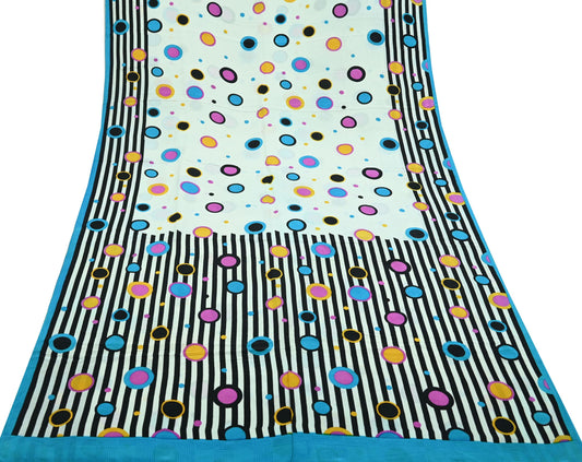 Indian Vintage White & Blue Saree Pure Crepe Silk Printed Sari 5yad Sewing Floral Soft Craft Fabric Wrap Dress making Crafting Quilting