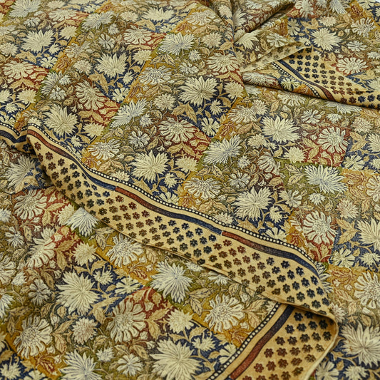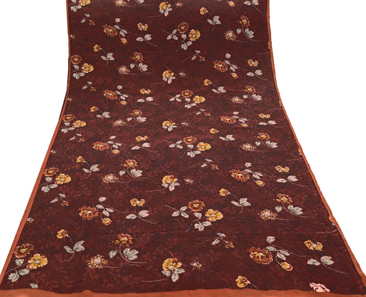 Indian Vintage Sari Brown & Beige Pure Crepe Silk Printed Sarees 5yd Sewing Craft Fabric Floral Soft Wrap Dress making Upcycle Quilting