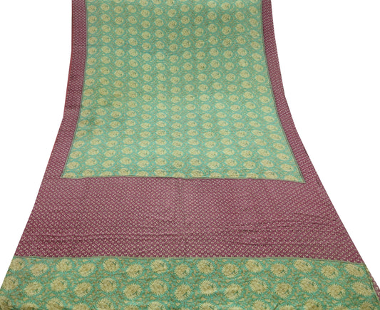Indian Vintage Sari Green & Pink Pure Crepe Silk Printed Saree 5yd Sewing Floral Soft Craft Fabric Wrap Dress making Crafting Quilting