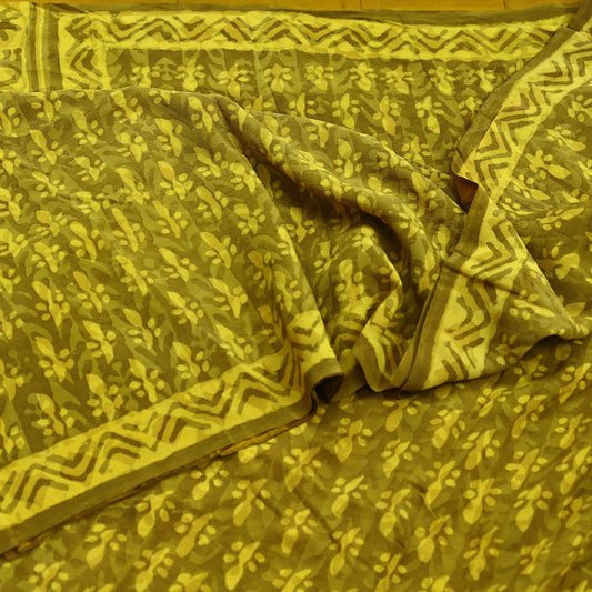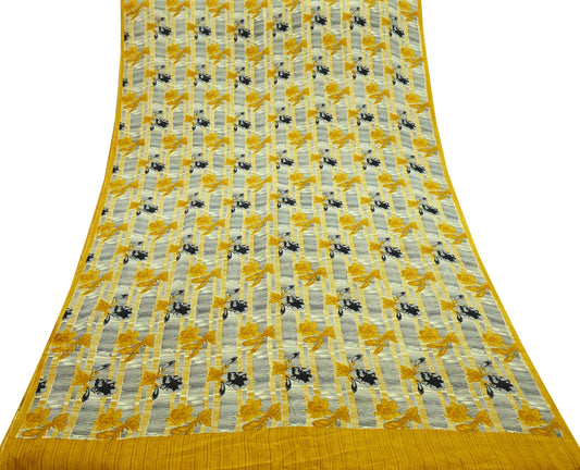 Indian Vintage Sari Yellow & Green Pure Crepe Silk Printed Sarees 5yd Sewing Floral Soft Craft Fabric Wrap Dress making Crafting Quilting