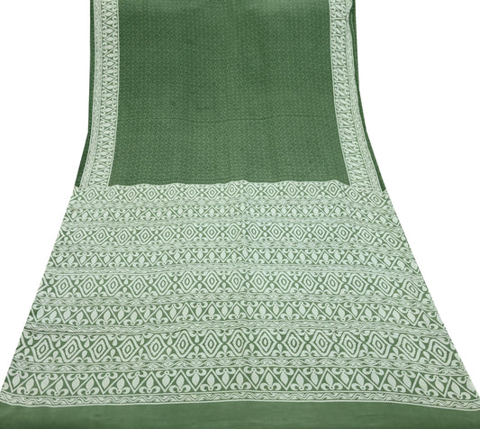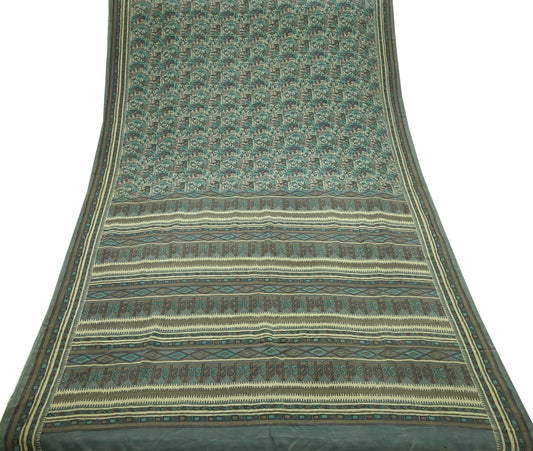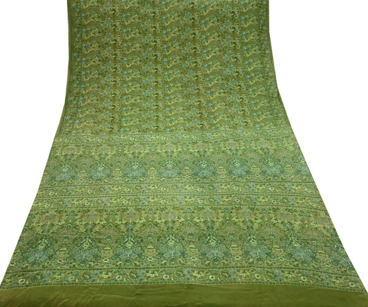 Indian Vintage Sari Green Pure Crepe Silk Printed Saree 5yd Sewing Floral Soft Craft Fabric Wrap Dress making Crafting