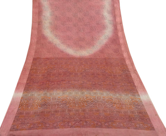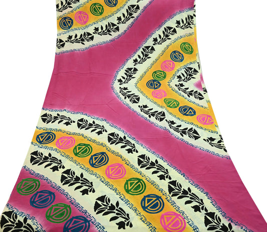 Indian Vintage Sari Ivory & Pink Pure Crepe Silk Printed Saree 5yard Sewing Floral Soft Craft Fabric Wrap Dress making Crafting Quilting