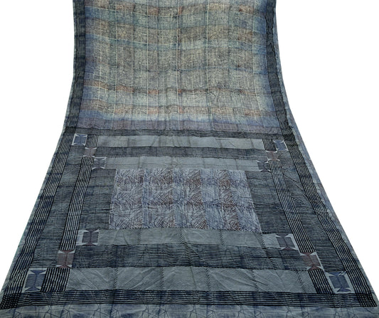 Indian Vintage Gray & Ivory Saree Pure Crepe Silk Printed Sari Craft Fabric 5yd Sewing Soft Wrap Dress making Crafting Quilting