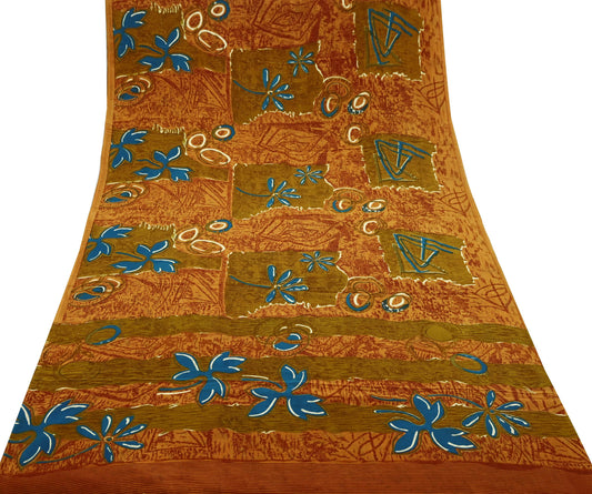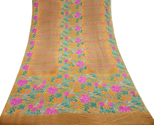 Indian Vintage Sari Mustard Pure Crepe Silk Printed Saree 5yd Sewing Floral Soft Craft Fabric Wrap Dress making Crafting Quilting Designing