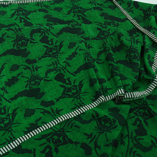 Indian Vintage Sari Green & Black Pure Crepe Silk Printed Sarees 5yd Sewing Floral Soft Craft Fabric Wrap Dress making Crafting Quilting
