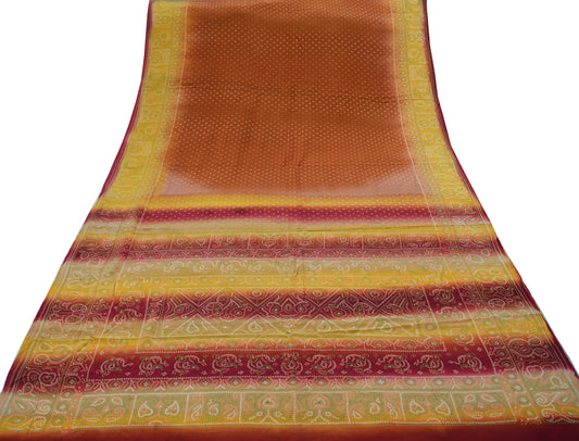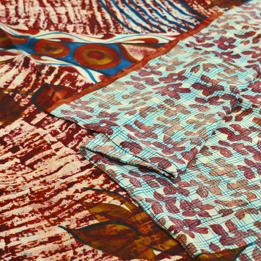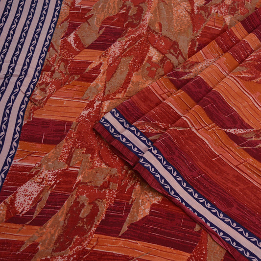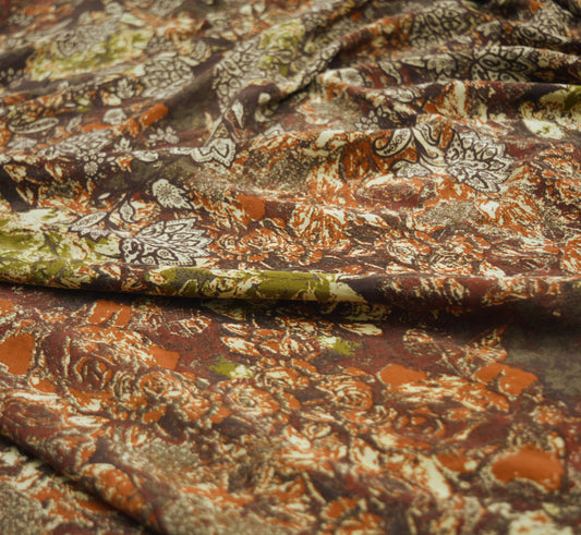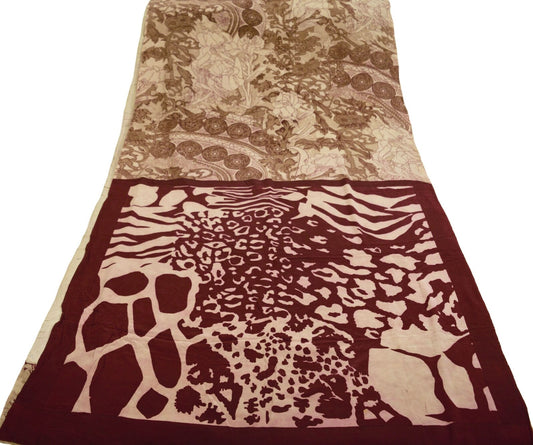 Indian Vintage Sari Brown & Maroon Pure Crepe Silk Printed Saree 5yard Sewing Abstract Soft Craft Fabric Wrap