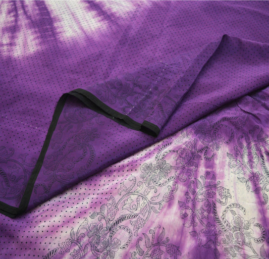 Indian Vintage Sari Purple & White Pure Crepe Silk Tie-Dye Printed Saree 6yard Sewing Ethnic Wrap