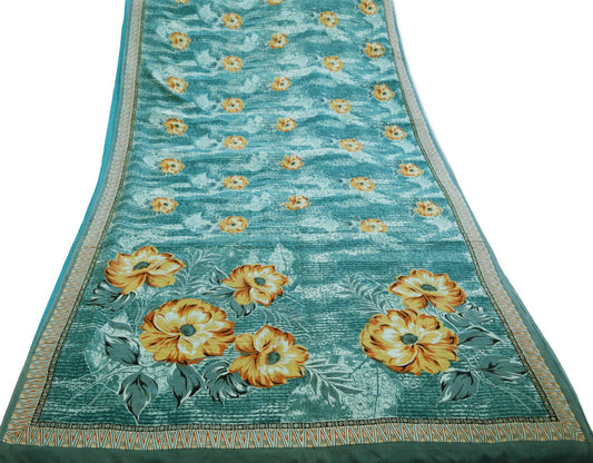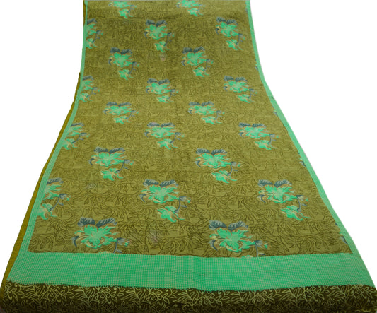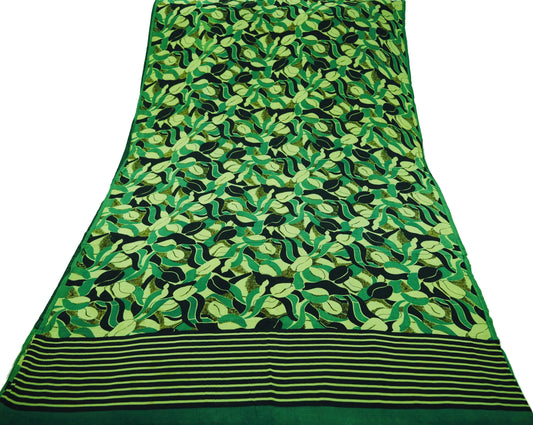 Indian Vintage Sari Green Pure Crepe Silk Printed Saree 5yard Sewing Floral Soft Craft Fabric Wrap