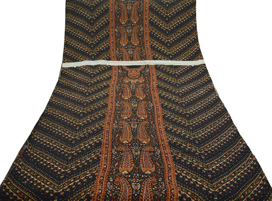 Indian Vintage Sari Black Pure Crepe Silk Printed Sarees 5yd Sewing Craft Fabric Soft Wrap Upcycle Crafting Dress Designing Quilting Paisley