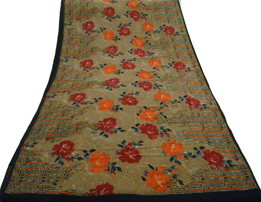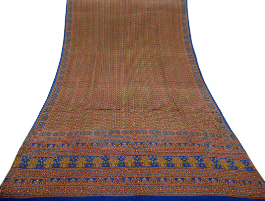 Indian Vintage Sari Brown Pure Crepe Silk Printed Saree 5yard Sewing Floral Soft Craft Fabric Wrap