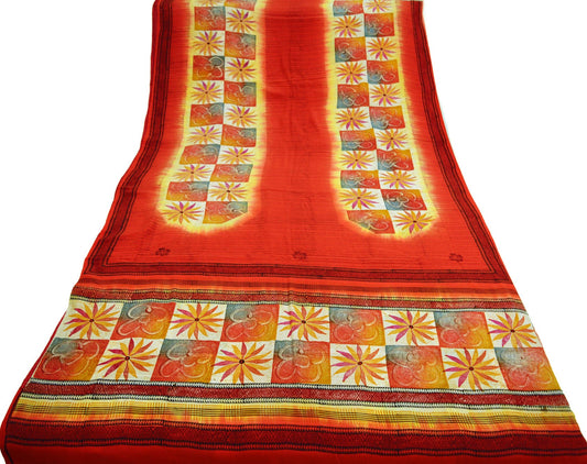 Indian Vintage Sari Red & Ivory Pure Crepe Silk Printed Saree 5yard Sewing Floral Soft Craft Fabric Wrap