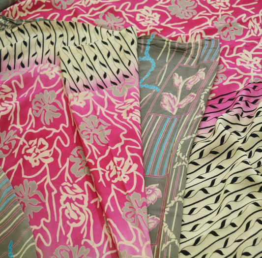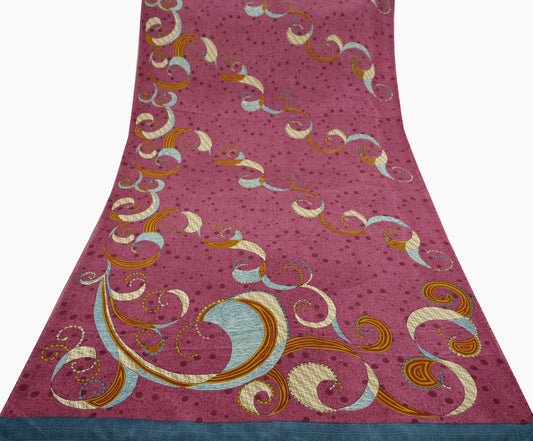 Indian Vintage Sari Pink Pure Crepe Silk Printed Saree 5yd Sewing Craft Fabric Abstract Soft Wrap Dress Making Quilting Crafting