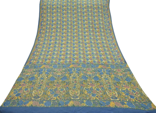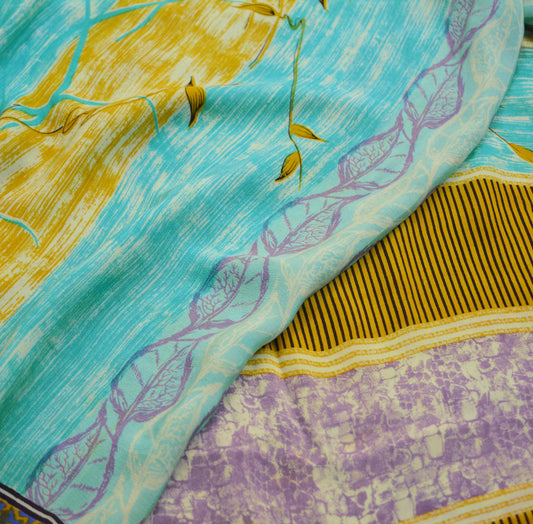 Indian Vintage Sari Pure Crepe Silk Printed Saree 5yard Sewing Floral Soft Craft Fabric Wrap