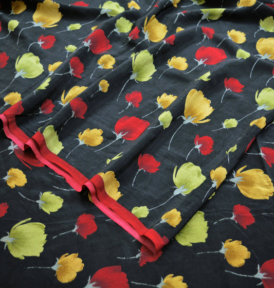 Indian Vintage Sari Black Pure Crepe Silk Printed Saree 5yard Sewing Floral Craft Fabric Wrap