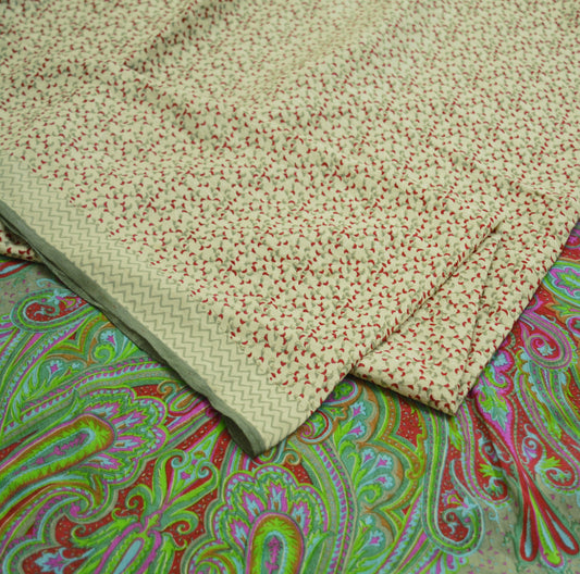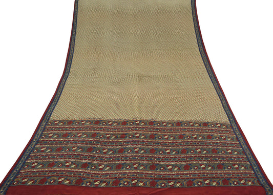 Indian Vintage Beige Saree Pure Crepe Silk Printed Sari 5yd Sewing Paisley Soft Craft Fabric Wrap Dress Making Quilting Crafting Upcycle