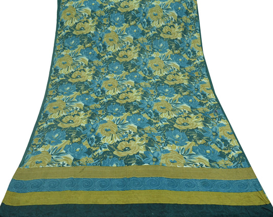 Indian Vintage Sari Green Pure Crepe Silk Printed Sarees 5yd Sewing Floral Soft Craft Fabric Wrap Dress Making Crafting Quilting Upcycle