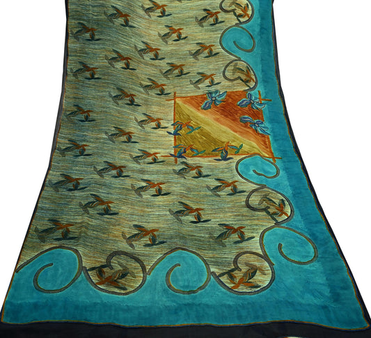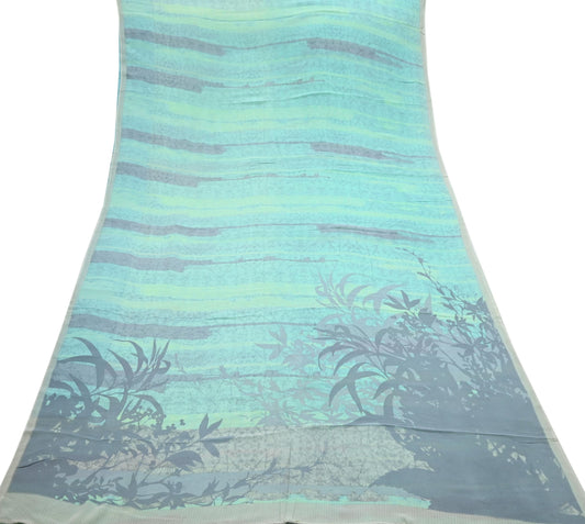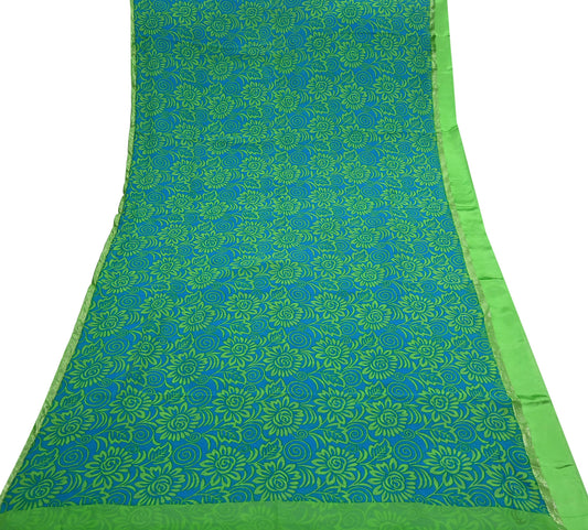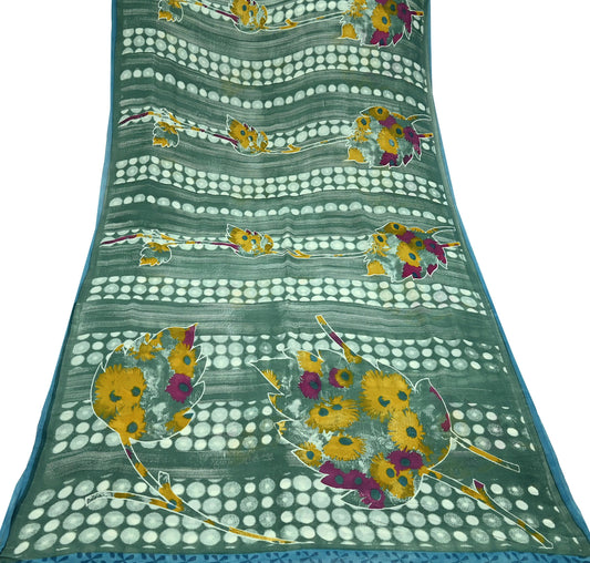 Indian Vintage Sari Blue & Green Pure Georgette Silk Printed Sarees 5Yd Craft Fabric Sewing Quilting Crafting Dress Making