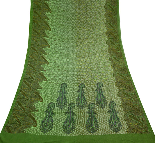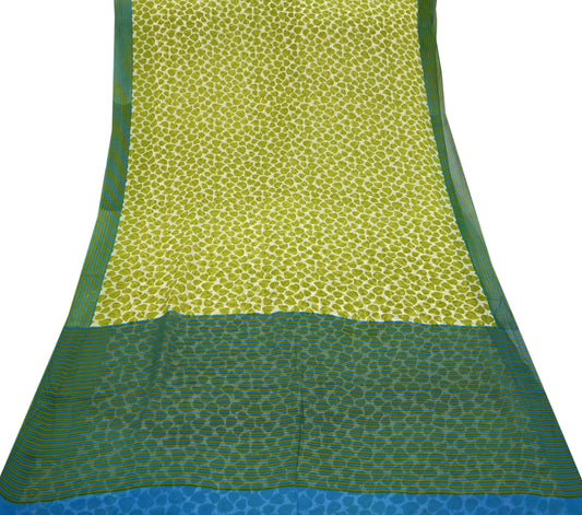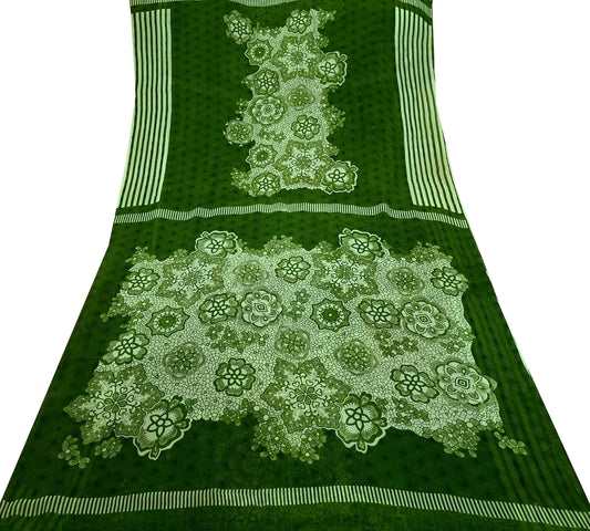 Indian Vintage Sari Green 100% Pure Georgette Silk Printed Sarees Sewing 5yd Craft Soft Dress Designing for Crafting Abstract