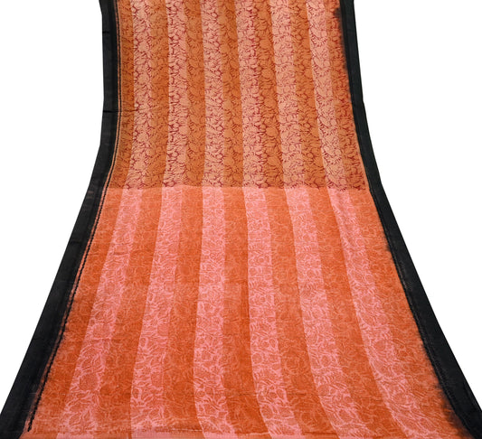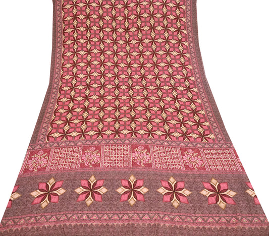 Indian Vintage Sari Peach & Brown Pure Georgette Silk Printed Sarees 5Yd Craft Fabric Sewing Quilting Dress making Crafting Dress Designing