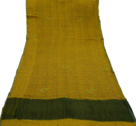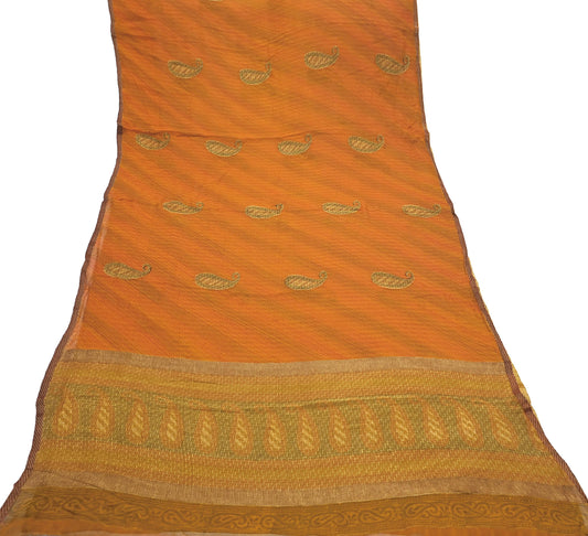 Women Vintage Sari Saffron & Green Pure Georgette Silk Printed Saree Craft Fabric Sewing 5Yard Soft Light Dress Making Floral Zari