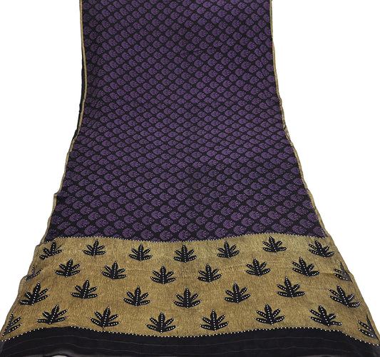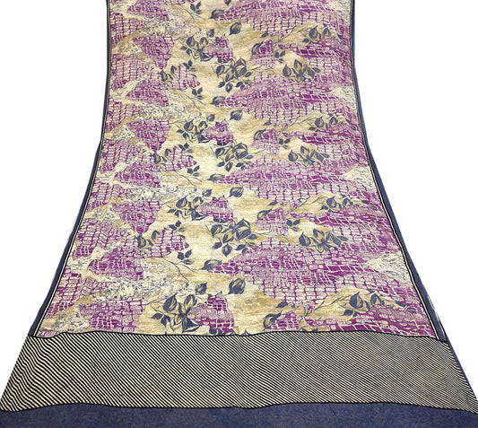Women Vintage Sari Beige & Purple Pure Georgette Silk Printed Saree Craft Fabric Sewing 5Yard Soft Light Dress Making Floral