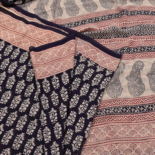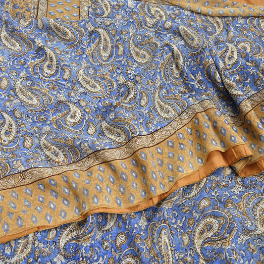 Women Vintage Sari blue beige 100% Pure Georgette Silk Block Printed Saree Craft Fabric Sewing 5Yard Soft Sari Dress Making